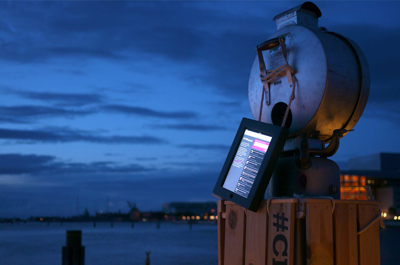 Each of the two SignalLamp stations has its own twitter account so people can follow the conversations between the two harbor sides online. User from around the world can also use twitter to send a new morse-code-message by an @reply to one of the Copenhagen SignalLamps and broadcast their message into the harbor.