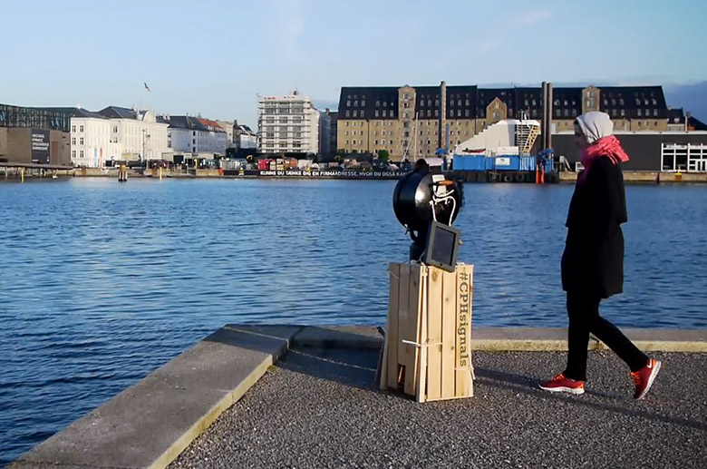 This project is connecting two Copenhagen neighborhoods using the old maritime technology of SignalLamps, combined with the modern network layer of twitter messages.
