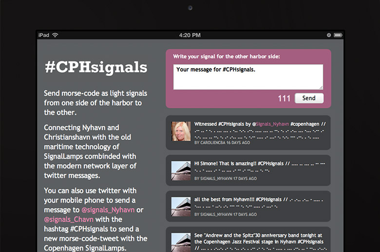 CPHsignals - Send Morse code signals through Twitter (2012)