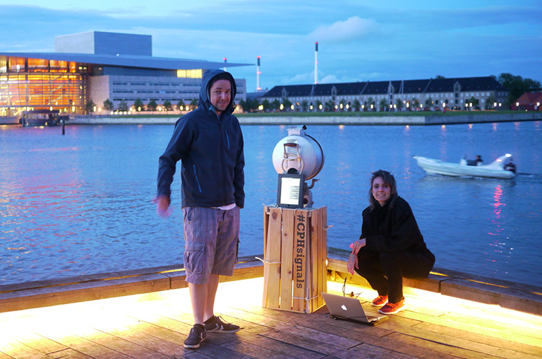 #CPHsignals is a fully functional prototype and was successful in provoking interactions between the two sides while exhibited in the Copenhagen harbor. The SignalLamps were kindly sponsored by maritime-antiques.dk and special thx @ Sebastian Schuster for his Dev Support.